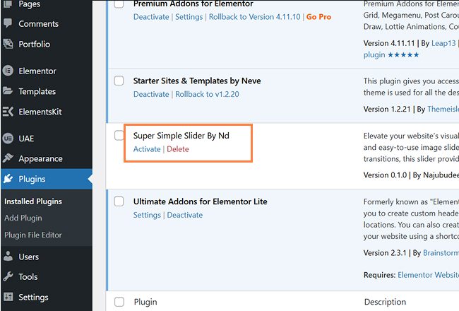 1. Activate Super Simple Slider Plugin.